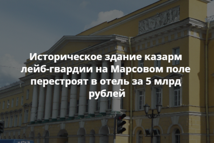 Здание казарм Павловского лейб-гвардии полка, расположенное на Марсовом поле в Петербурге, перестроят в отель стоимостью не менее 5 млрд рублей. Соответствующее соглашение подписали Смольный и банк «Санкт-Петербург» на международной выставке коммерческой недвижимости MIPIM 2019 во Франции.