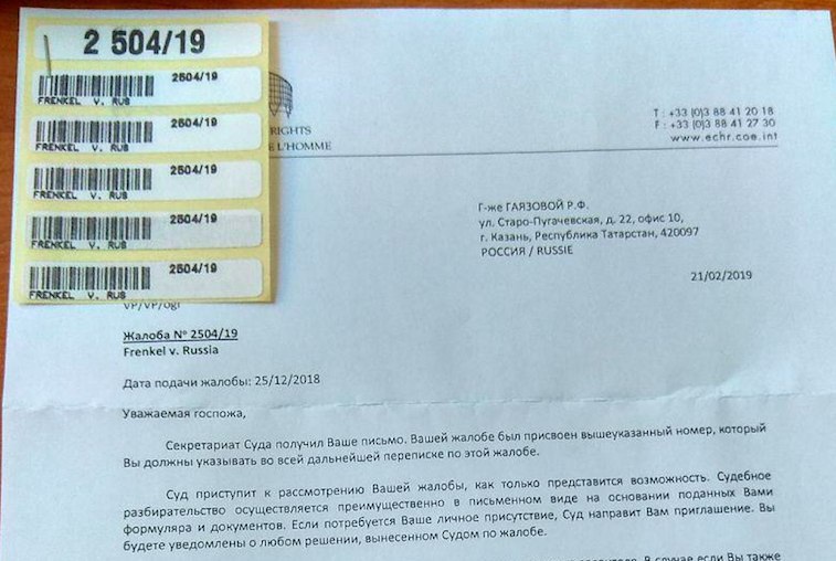Интересы Френкеля в ЕСПЧ представляет юрист «Зоны права» Регина Гаязова.