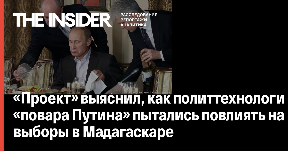 Компании Евгения Пригожина, которого называют «поваром Путина», нанимали региональных политтехнологов, чтобы обеспечить поддержку выгодному Кремлю кандидату на выборах президента Мадагаскара. Об этом сообщается в расследовании «Проекта» об интересах бизнесмена в Африке.