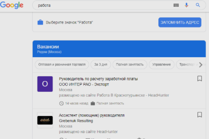 Новая функция заработала в России 14 марта: в отдельном интерфейсе поисковой выдачи при соответствующем запросе (например, «вакансия кассир») отображаются вакансии.