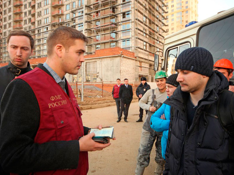 Проверка сотрудником ФМС мигрантов / mskagency.ruКак сообщает «КоммерсантЪ», для покрытия естественного отрицательного прироста населения нужно до 300 тыс. человек в год. В идеале же, сообщают источники издания, нужно стремиться к тому, чтобы новыми россиянами в будущем стало 5–10 млн человек. Напомним, гражданство РФ в прошлом году получило около 270 тыс. иностранцев и лиц без гражданства. Количество мигрантов из Украины составило 14,8 тысяч человек. Больше всего переселенцев зафиксировано из республики Таджикистан: в 2018 году оттуда приехала 31 тысяча человек. Вторым в списке значится Казахстан, из которого эмигрировали 26,5 тысяч жителей.