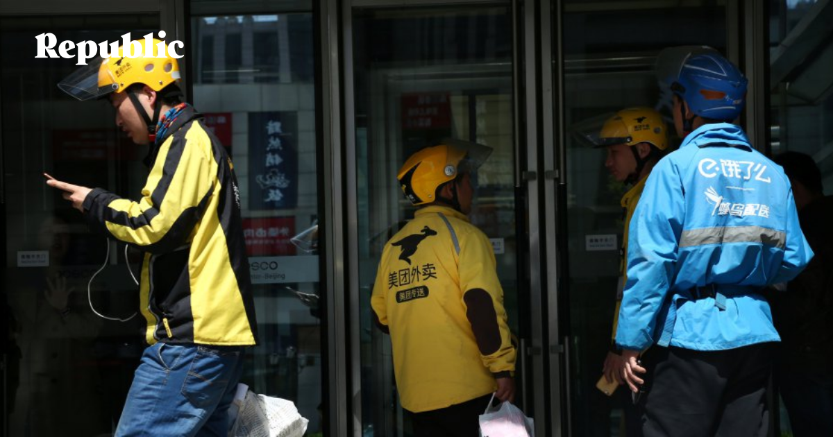 Курьеры по доставке еды Ele.me и Meituan. Пекин. Фото: Reuters