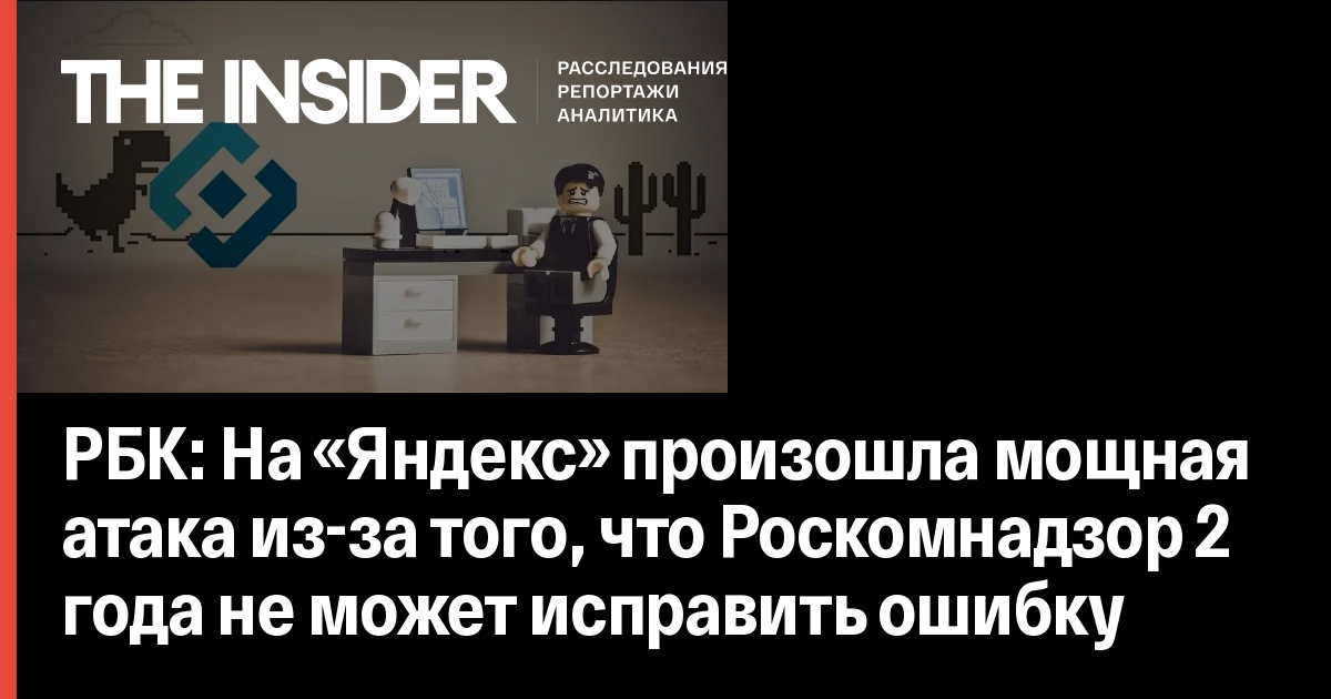 РБК: На «Яндекс» произошла мощная атака из-за того, что Роскомнадзор 2 года не может исправить ошибку