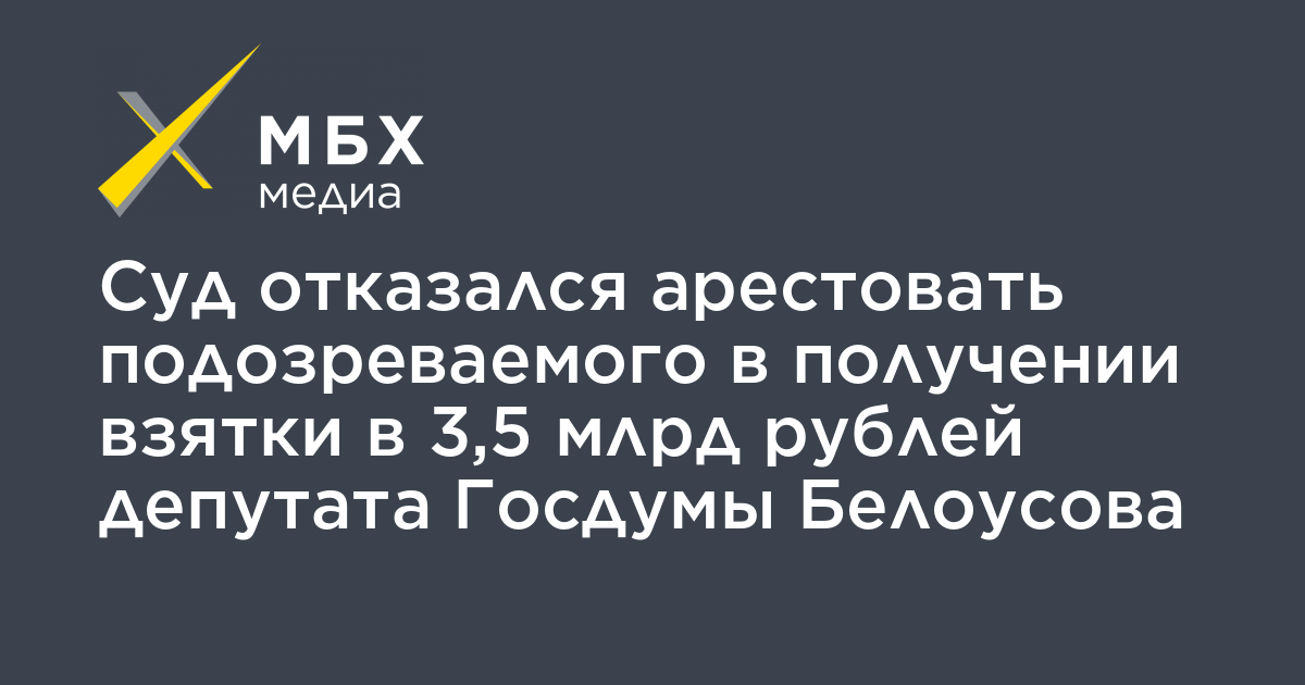Суд отказался арестовать подозреваемого в получении взятки в 3,5 млрд рублей депутата Госдумы Белоусова