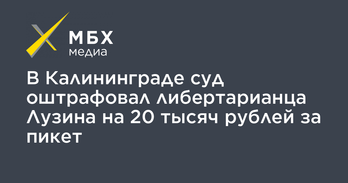 В Калининграде суд оштрафовал члена Либертарианской партии Ивана Лузина на 20 тысяч рублей, признав его виновным в организации пикета без уведомления органов власти (ч. 2 статьи 20.2 КоАП), об этом «МБХ медиа» рассказал адвокат активиста Александр Добральский.