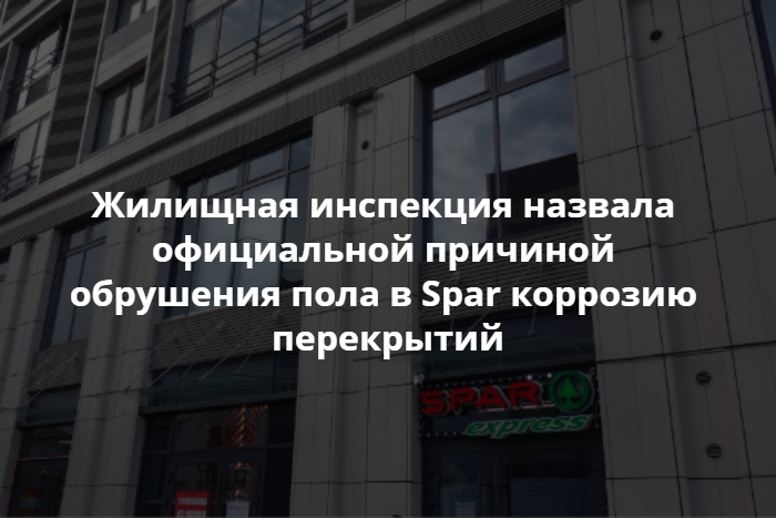 Обрушение пола в супермаркете Spar на Петроградской стороне произошло из-за коррозии металлических перекрытий, сообщают в жилищной инспекции Петербурга.