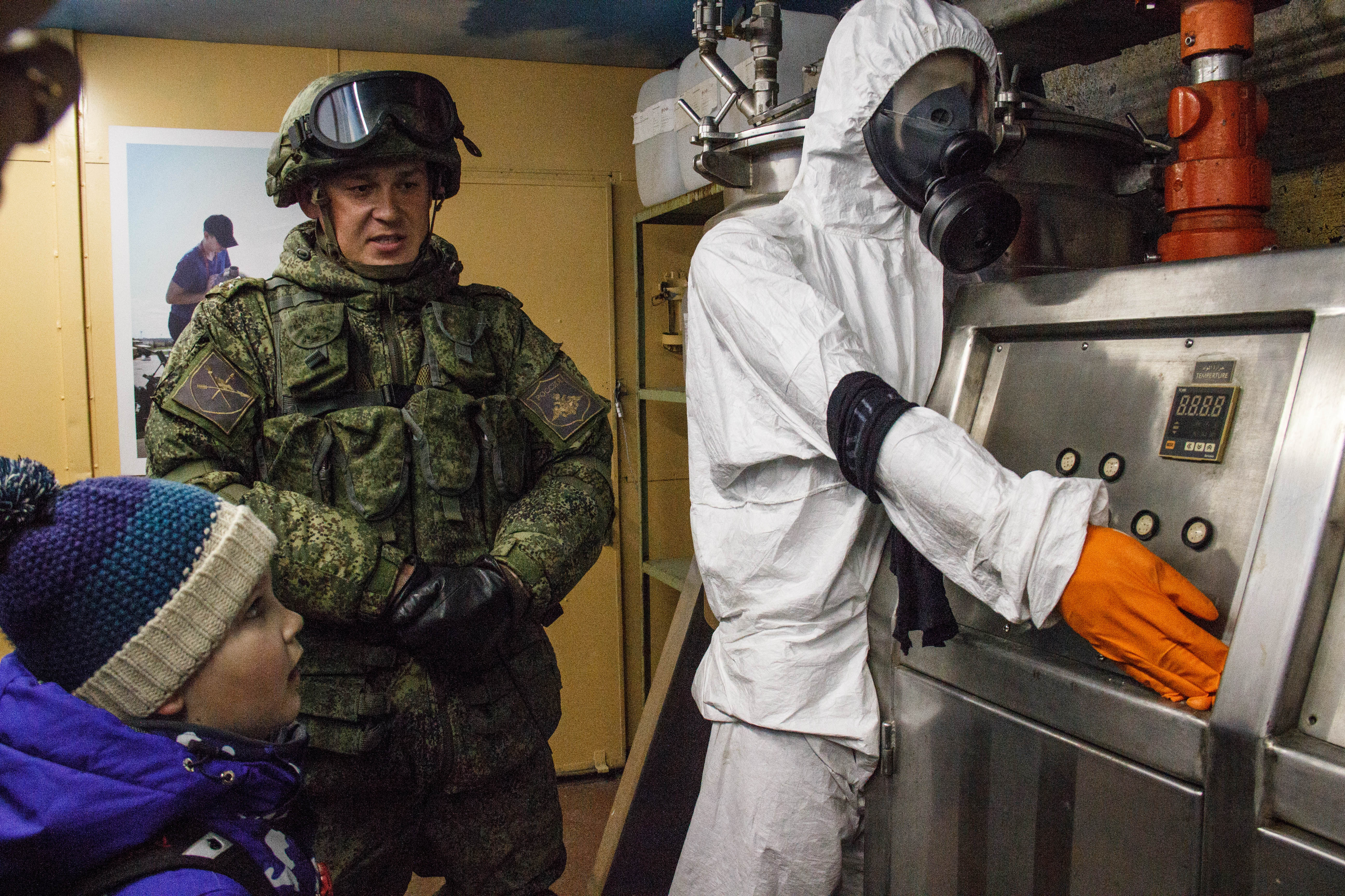 В вагоне, где демонстрируется оружие, пистолеты и винтовки, экспозицию осматривают пятилетний мальчик и его мама. Наталья просит их с сыном не фотографировать. Но поговорить соглашается.