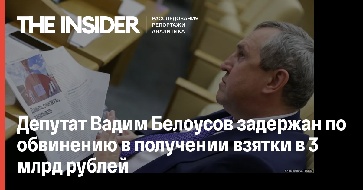 Депутат Вадим Белоусов задержан по обвинению в получении взятки в 3 млрд рублей