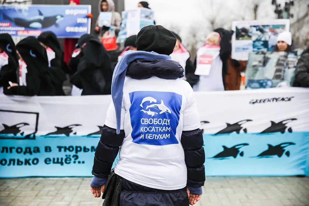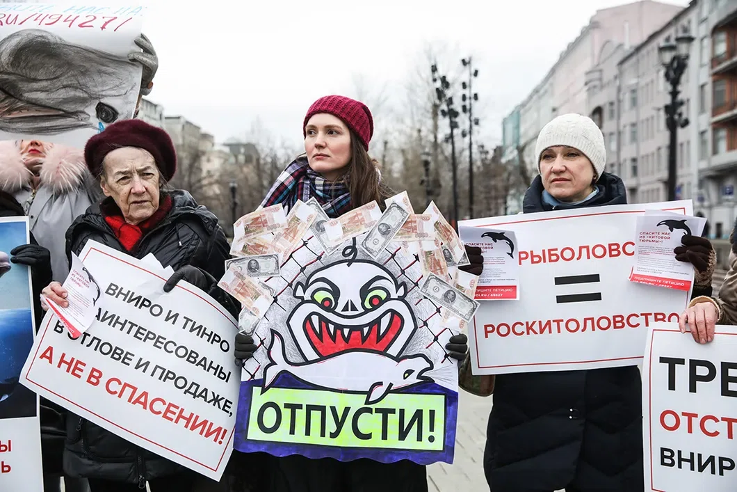 «Кирилл, 1 год. Я умер в китовой тюрьме». В Москве прошел пикет за освобождение косаток и белух из приморской бухты