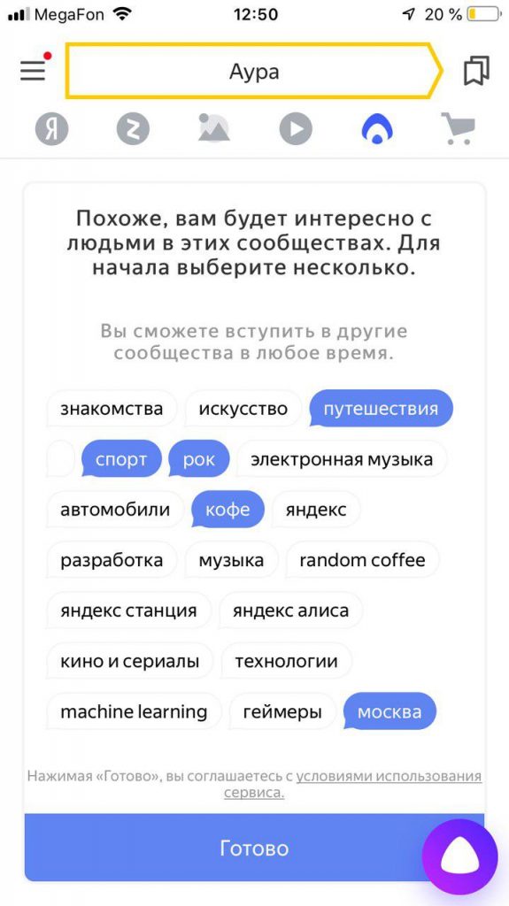 Как протестировать «Ауру». Значок «Аура» появился у некоторых пользователей в мобильном приложении «Яндекса» под строкой поиска, в одном ряду с иконками других сервисов «Яндекса» — «Дзен», «Видео», «Маркет» и прочими. Пока что соцсеть работает только в мобильном приложении. Возможность тестирования получили сотрудники «Яндекса» и их знакомые, пишет Roem.ru. Каждый из них может приглашать пять человек в день. Приглашение приходит на почту на «Яндексе». После клика на кнопку «Принять приглашение» в мобильном приложении появляется значок «Аура».