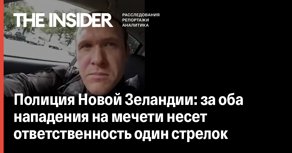 Полиция Новой Зеландии сообщила, что ответственность за оба нападения на мечети в Крайстчерче несет один человек — находящийся под арестом по решению суда Брентон Таррант. Об этом рассказал комиссар полиции Новой Зеландии Майк Буш.
