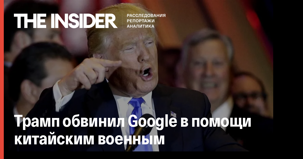 Президент США Дональд Трамп написал в Twitter, что компания Google «помогает Китаю и их военным, а не США».