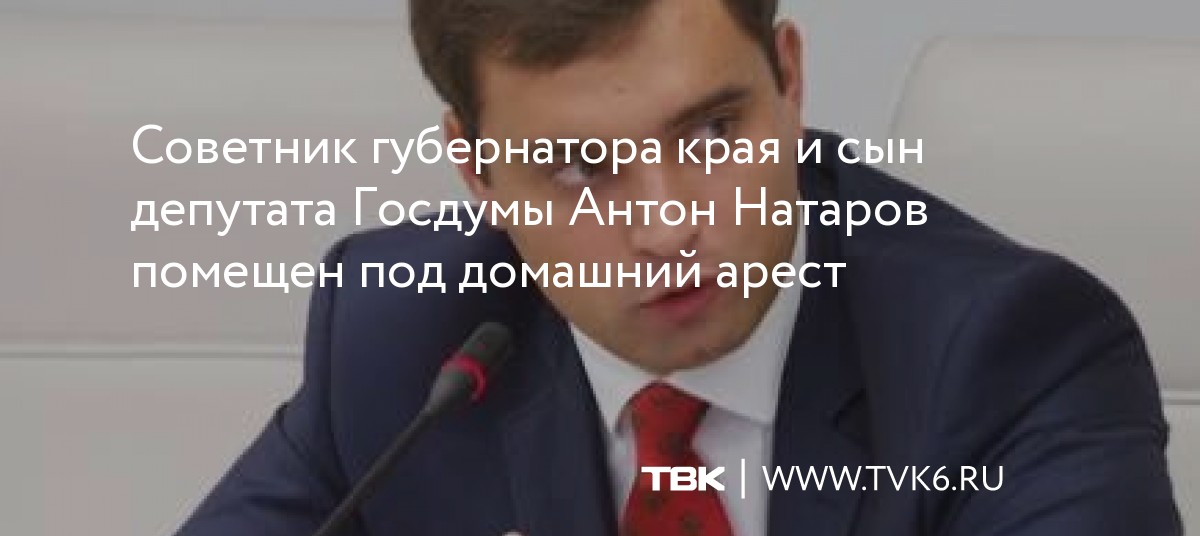 Советник губернатора края и сын депутата Госдумы Антон Натаров помещен под домашний арест