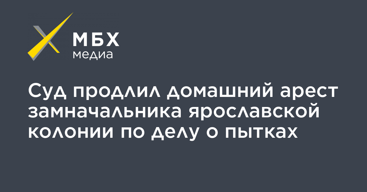 Суд в Ярославле продлил домашний арест заместителю начальника по воспитательной работе местной ИК-1 Ивану Калашникову по делу о пытках. Об этом «МБХ медиа» сообщила адвокат «Общественного вердикта» Ирина Бирюкова.