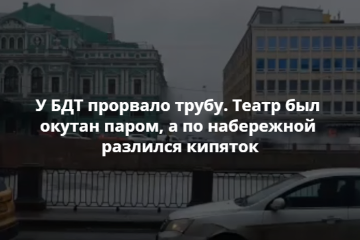 «Фонтанка» пишет, что паром был окутан не только БДТ, но также бизнес-центр «Лениздат» и рынок Апраксин двор. По данным издания, теплосеть прорвало примеро в 13:30.