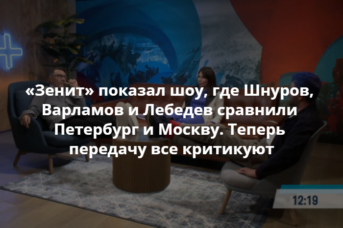 Основной темой обсуждения стало противостояние Москвы и Петербурга. Подробно происходившее в студии описало издание Sports.ru. Лебедев раскритиковал Петербург, Шнуров — Москву, а Варламов указал на проблемы Петербурга, при этом назвав его лучшим городом России.