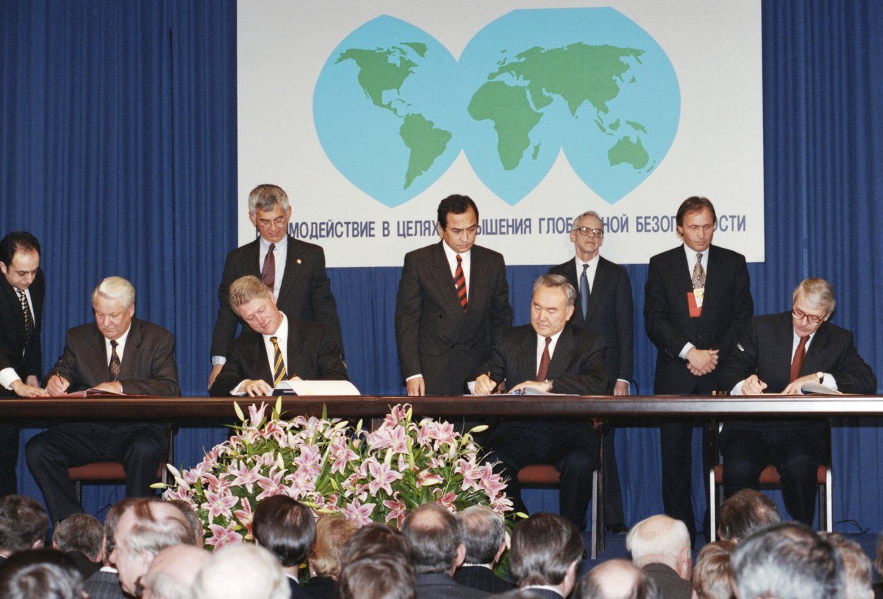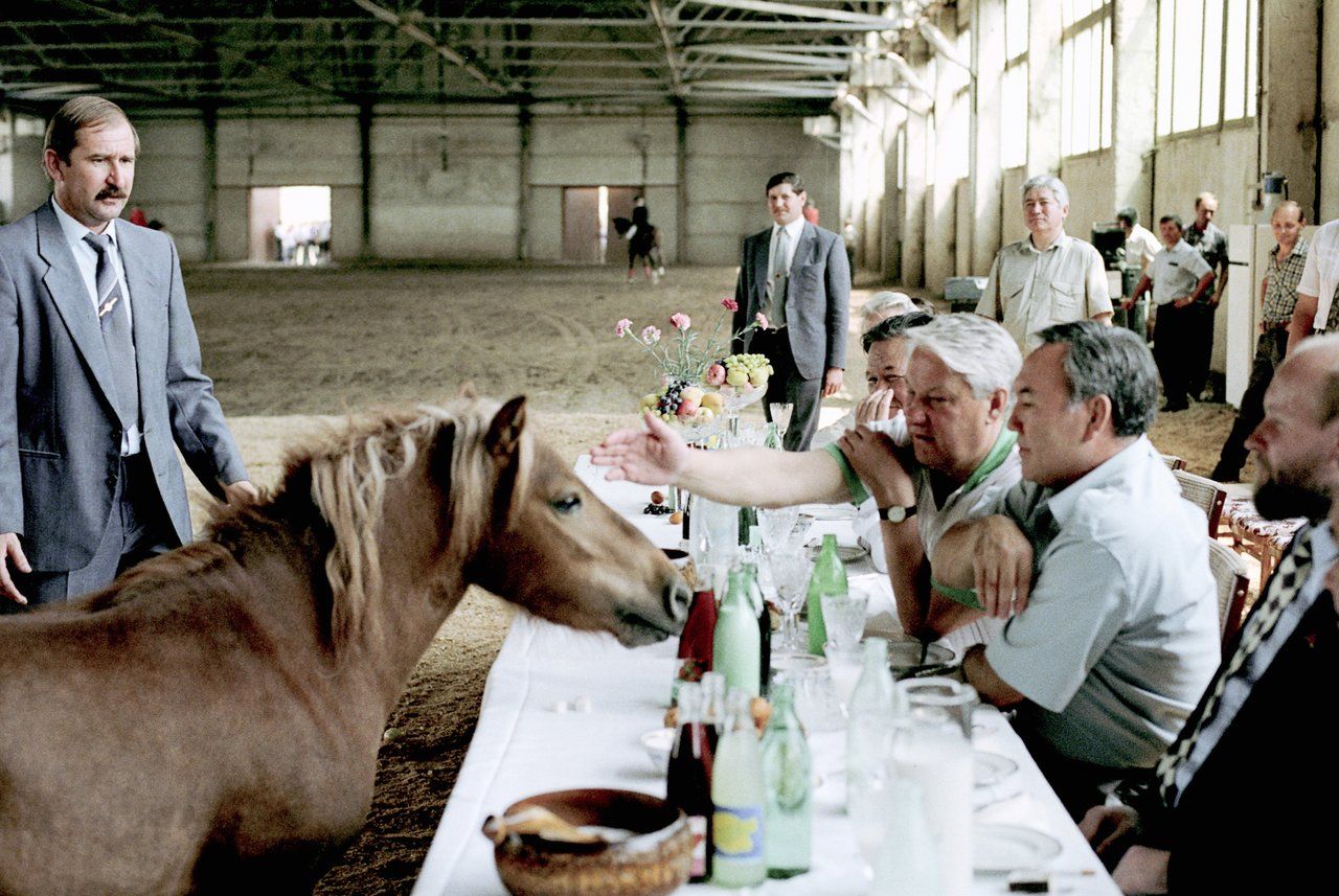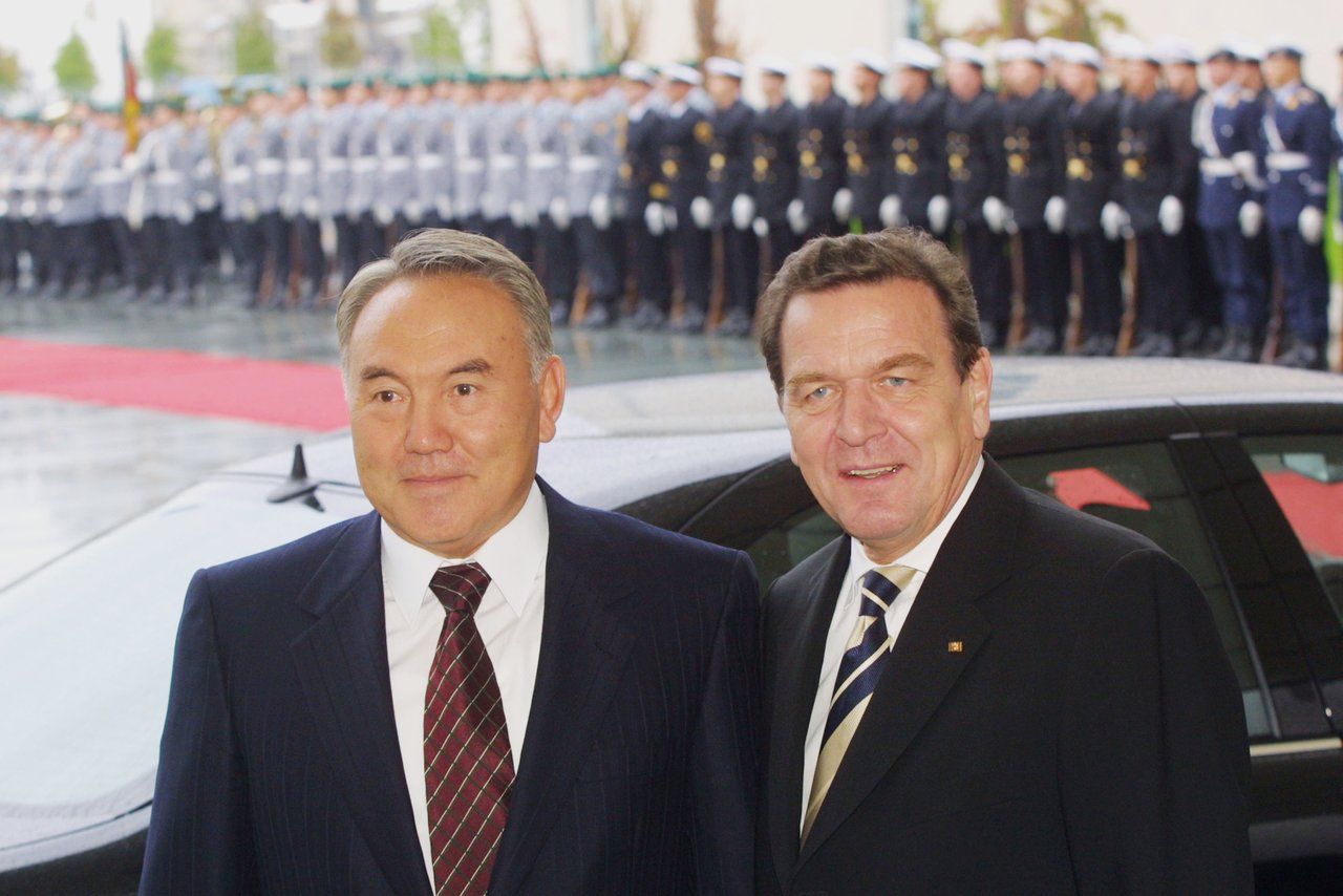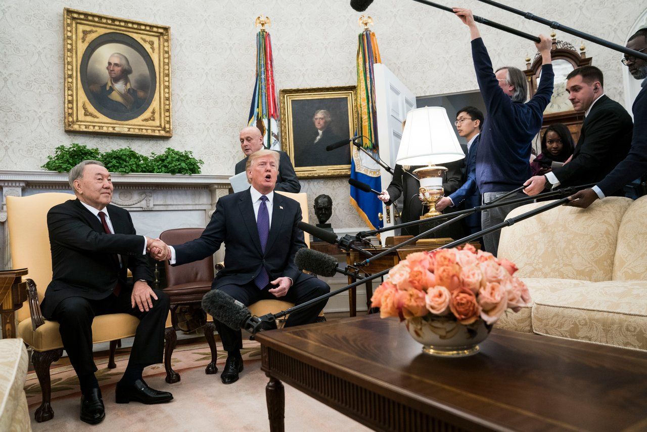 Anatoly Ustinenko / KAZTAG / TASS Nursultan Nazarbayev in 1992Anatoly Ustinenko / TASS Kazakhstani President Nursultan Nazarbayev with his family, 11 months after the country's first elections. November 11, 1992Alexey Boitsov / Sputnik / Scanpix / LETA General Secretary of the CPSU Central Committee, USSR President Mikhail Gorbachev, First Secretary of the Communist Party of Kazakhstan Nursultan Nazarbayev, and First Secretary of the Communist Party of the RSFSR Ivan Polozkov. Presidium of the XXVIII Congress of the CPSU. Kremlin Palace of Congresses. July 2, 1990.G. Kachkin / Sputnik / Scanpix / LETA RSFSR President Boris Yeltsin during an official visit to Kazakhstan. August 17, 1991.Anatoly Ustinenko / TASS Nazarbayev with former British Prime Minister Margaret Thatcher in Great Britain. December 13, 1991.Alexander Chumichev / TASS Budapest Memorandum on Security Assurances signing ceremony. Left to right: Boris Yeltsin, Bill Clinton, Nursultan Nazarbayev, and British Prime Minister John Major. December 5, 1994.David Hume Kennerly / Getty Images Nazarbayev with his wife, Sara Nazarbayeva, and U.S. First Lady Hillary Clinton in Almaty. November 10, 1997.ROTA / Camera Press / Vida Press Nazarbayev with British Prime Minister Tony Blair in London. November 16Sean Gallup / Getty Images Nazarbayev with German Chancellor Gerhard Schröder in Berlin. October 2, 2001.Anatoly Ustinenko / TASS Nazarbayev with Vladimir Putin at the Shymbulak ski resort outside Almaty. March 3, 2002.Franco Origlia / Getty Images Nazarbayev with Pope Pope John Paul II at the Vatican. February 6, 2003.Alexey Panov / TASS Nazarbayev with the leaders of other post-Soviet states in Moscow. July 3, 2004.Dennis Brack / Bloomberg / Getty Images Nazarbayev with George W. Bush in Washington on September 29, 2006, to negotiate the delivery of Kazakh natural gas to Western markets, bypassing Russia.Alex Wong / Getty Images Nazarbayev and Barack Obama at a nuclear security summit on April 13, 2010.Andrei Mosienko / AFP / Scanpix / LETA Nazarbayev with Ukrainian President Viktor Yanukovych and Russian President Dmitry Medvedev in Washington. April 2010.Sasha Mordovets / Getty Images Nazarbayev with Belarusian President Alexander Lukashenko at a Commonwealth of Independent States summit in Minsk on October 10, 2014.Mykola Lazarenko / Reuters / Scanpix / LETA Nazarbayev with Ukrainian President Petro Poroshenko in Kyiv on December 22, 2014.Carl Court / Getty Images Nazarbayev with British Prime Minister David Cameron in London on November 3, 2015.Jabin Botsford / The Washington Post / Getty Images Nazarbayev with Donald Trump at the White House on January 16, 2018.Mikhail Mettsel / TASS / Vida Press Nazarbayev with the leaders of Azerbaijan, Iran, Russia, and Turkmenistan at the Fifth Caspian Summit in August 2018.
