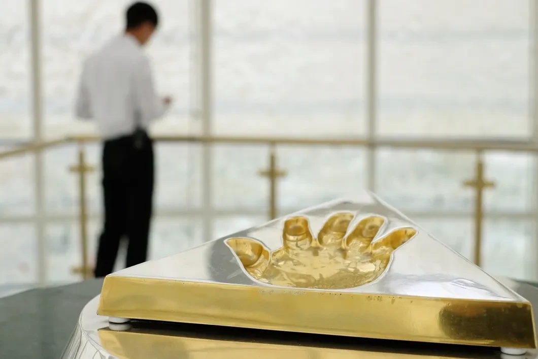 Художественная композиция «Аялы алакан» («Заботливые руки») — оттиск правой руки президента Назарбаева на смотровой площадке «Байтерек» в Астане. Фото: РИА Новости