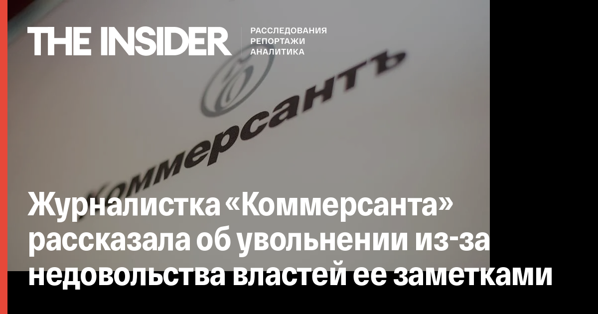 Журналистка «Коммерсанта» рассказала об увольнении из-за недовольства властей ее заметками