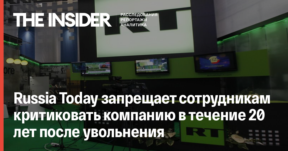 Russia Today запрещает сотрудникам критиковать компанию в течение 20 лет после увольнения