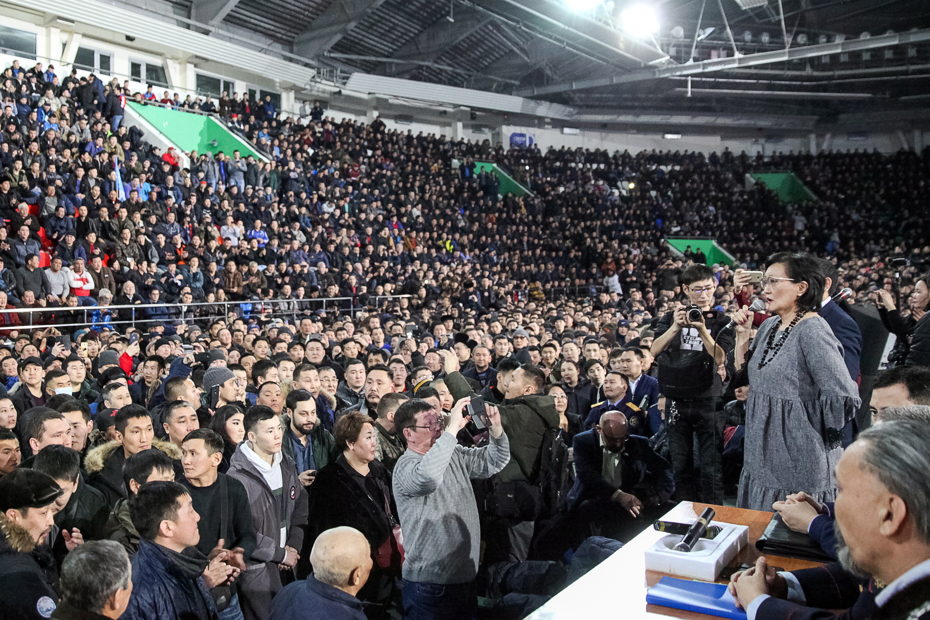 Весь диалог народа с властью велся на якутском языке. Успокоить собравшихся удалось мэру Якутска Сардане Авксентьевой.