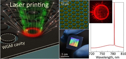 Используя ультракороткие лазерные импульсы, ученые напечатали оптические микродисковые лазеры в тонких перовскитных пленках на стеклянной подложке. Полученные перовскитные лазеры можно использовать в компьютерах будущего и обеспечивать работу фотонных схем в устройствах сверхбыстрой обработки информации.