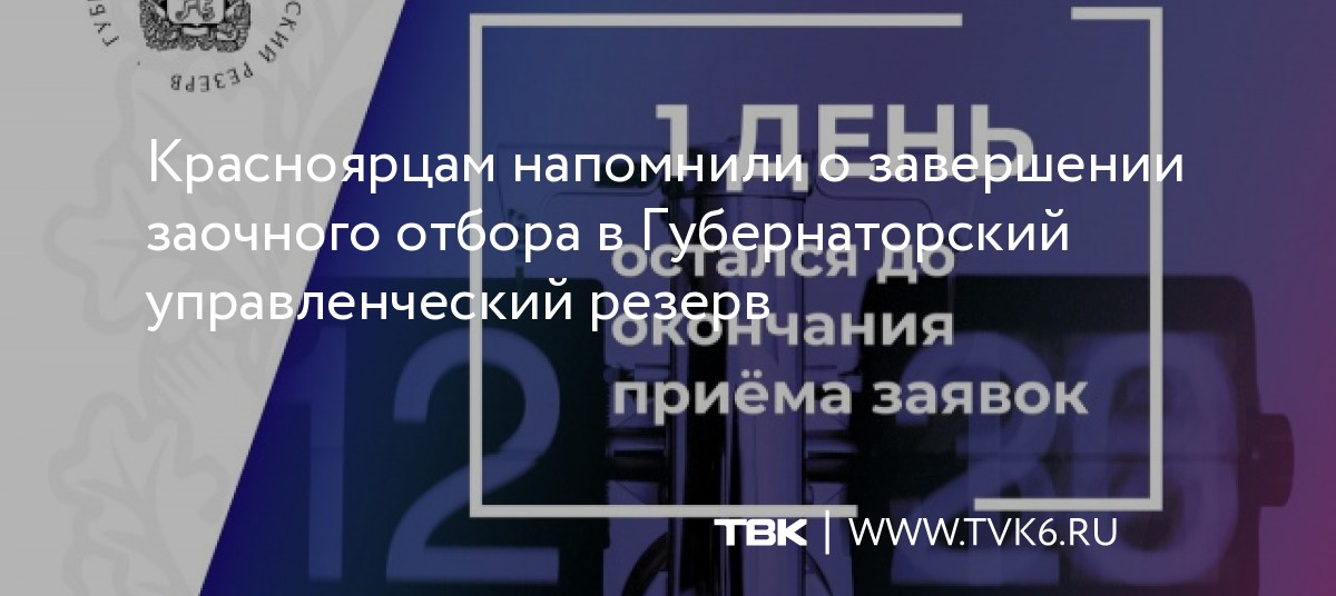 Жителям Красноярского края напоминают о завершении заочного отбора в управленческий резерв. Это обновленный открытый конкурс, принять участие в котором могут как опытные, так и начинающие руководители. Последний день приема заявок на сайте – 20 марта.