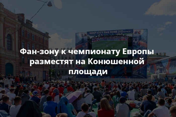 Фан-зону к чемпионату Европы, который пройдет в 2020 году, организуют на Конюшенной площади. как и во время чемпионата мира. Об этом пишет «Фонтанка» со ссылкой на вице-губернатора Владимира Кириллова.