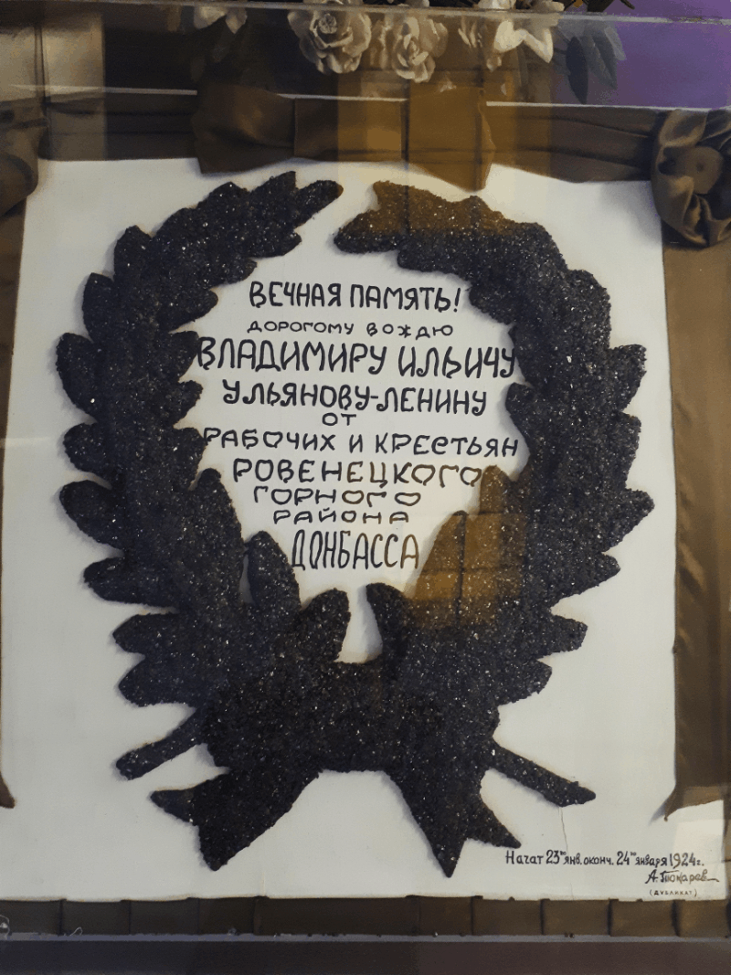 Скульптура Ленина на фоне герба в ульяновском мемориале. На втором кадре — табличка с телеграммой Ленина на Соборной площади в Ульяновске (бывшая пл. Ленина)