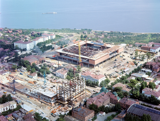© leninmemorial.ru 16 апреля 1970 года. Открытие мемориала В.И. Ленина в Ульяновске С точки зрения замысла мемориал и вся площадь 100-летия Ленина (с недавнего времени — просто площадь Ленина) — проект титанический. Соборы и церкви, формировавшие панораму старого купеческого Симбирска, снесли задолго до возведения мемориала, и новый ансамбль со зданиями Педагогического университета, гимназии № 1 им. Ленина, гостиницы «Венец», парком Дружбы народов должен был утвердить новые акценты в застройке Венца — бульвара на высоком берегу Волги, сформировать фасад города. И если чисто эстетически испортить могучий волжский ландшафт сложно, то нарушить природный баланс берега, который местами ползет в реку, — запросто. Тем более массой квадратного в плане мемцентра со стороной 110 метров.