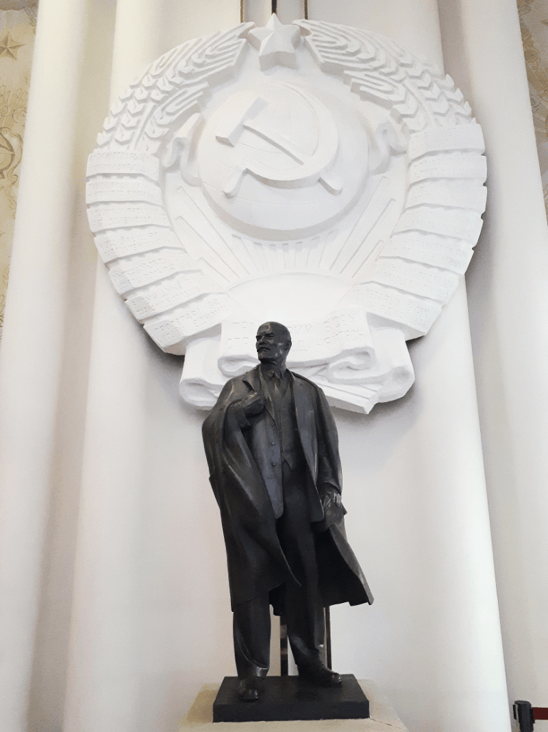 Архитектура эта растет из 30-х, игнорируя «излишества» и сталинский ампир, и аккуратно формулирует посыл. Это не «космическо-коммунистический» модернизм, не проект-манифест и вообще не высказывание, а именно посвящение. Отсюда сдержанность художнических фантазий и, как следствие, незацикленность — мемориал действительно удачно вписан в ансамбль, где продумано все, включая высадку благородных голубых елей. В январе 2019-го я долго гуляла по экспозиции мемориала — а там десятки артефактов вроде посмертной маски Ульянова-Ленина, подарков от соцстран, меховых аппликаций с олимпийским мишкой и, прошу прощения, гильотины. Смотрительницы вспоминают, как они студентками работали на стройке мемориала. Говорят, иногда заезжие иностранцы ходят в музей по три дня подряд (я же говорю — туристический потенциал). Когда закончится ремонт, они не знают. Судя по сайту госзакупок, Ленинский мемориал в основном оплачивает выступления артистов в концертном зале, а не ремонт.