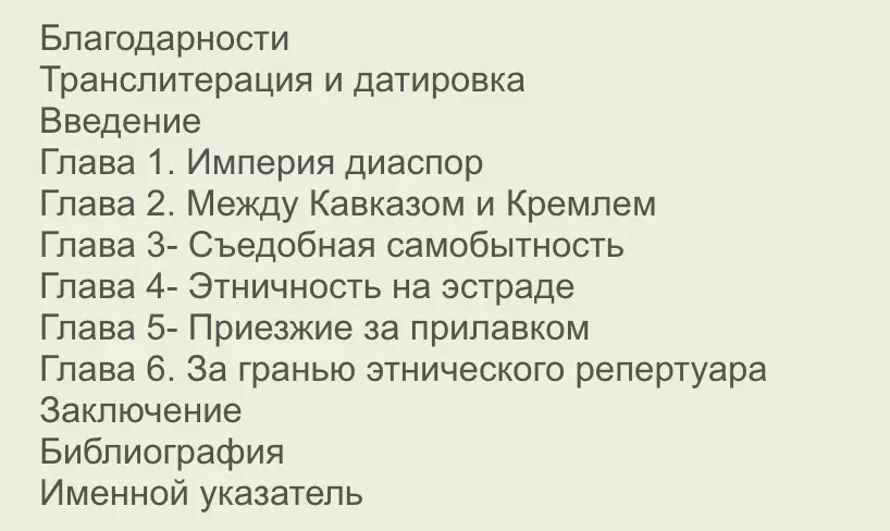 Для начала автор, историк из Канзасского университета, определяет СССР как «империю диаспор», то есть как крупное государство, состоявшее не просто из больших территорий, населенных различными народами, но и группами этих народов, которые активно перемешались по всему огромному государству. И СССР во многом отвечал запросам различных диаспор. В книге эту идею автор развивает на примере грузин: сперва рассказывая про их участие в революции, потом в строительстве советского государства, в управлении им, наконец, во влиянии, которая грузинская диаспора оказывала практически на все стороны советской жизни — от кулинарии до кинематографа.