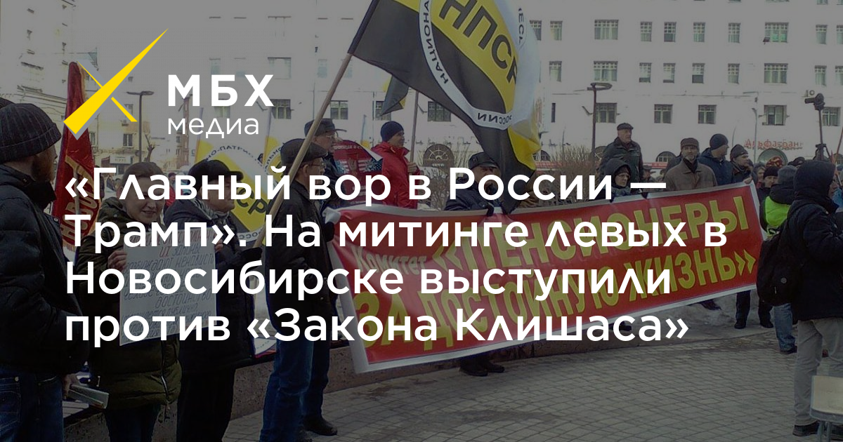 «Главный вор в России — Трамп». На митинге левых в Новосибирске выступили против «Закона Клишаса»