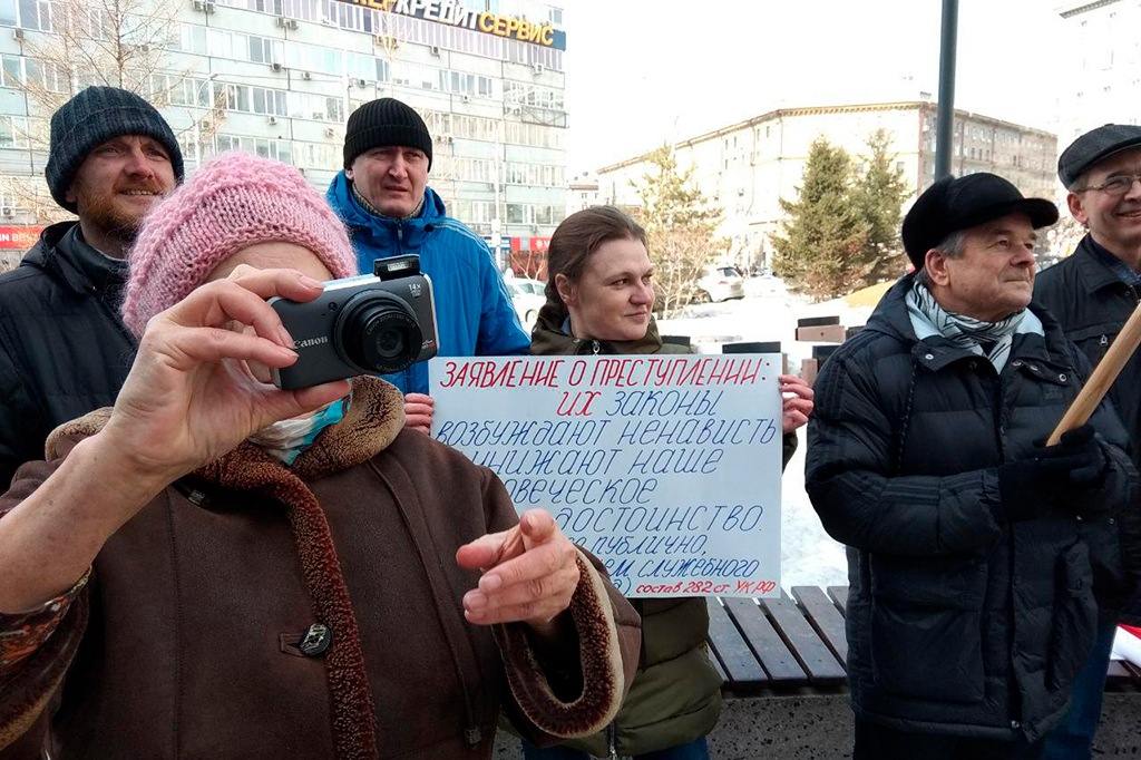 Активист Сергей Крупенько заявил, что через несколько лет должен был бы выйти на пенсию, но из-за реформы у него «украдут» 720 тыс. рублей. И он решил напомнить, кто именно «украл» эти деньги, перечислив голосовавших за законопроект новосибирских депутатов Госдумы Алекснадра Карелина, Андрей Каличенко и Максима Кудрявцева, сенаторов Владимира Городецкого и Владимира Лаптева.
