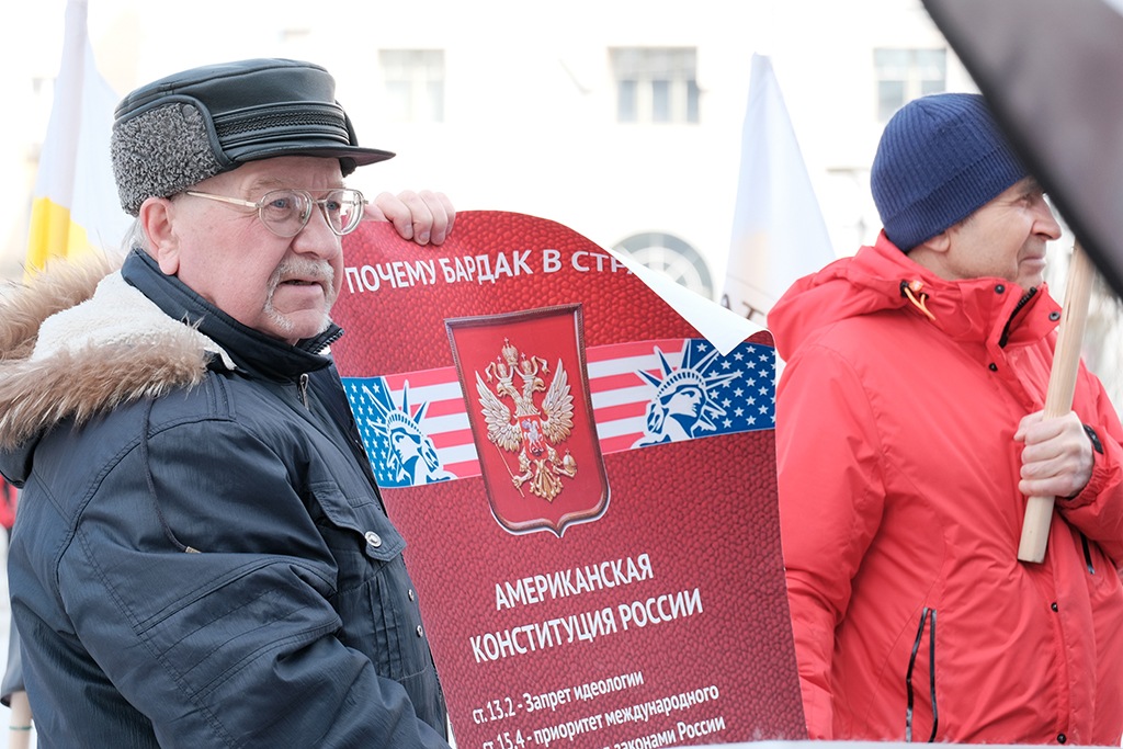 Сорокин решил пошутить и призвал протестующих говорить, что во всем, в том числе в повышении пенсионного возраста, виноваты «Трамп и Госдеп». И так несколько раз. Некоторые участники, не успевшие к началу акции, явно запутались. «Вон из России этих негодяев!» — воскликнул он.