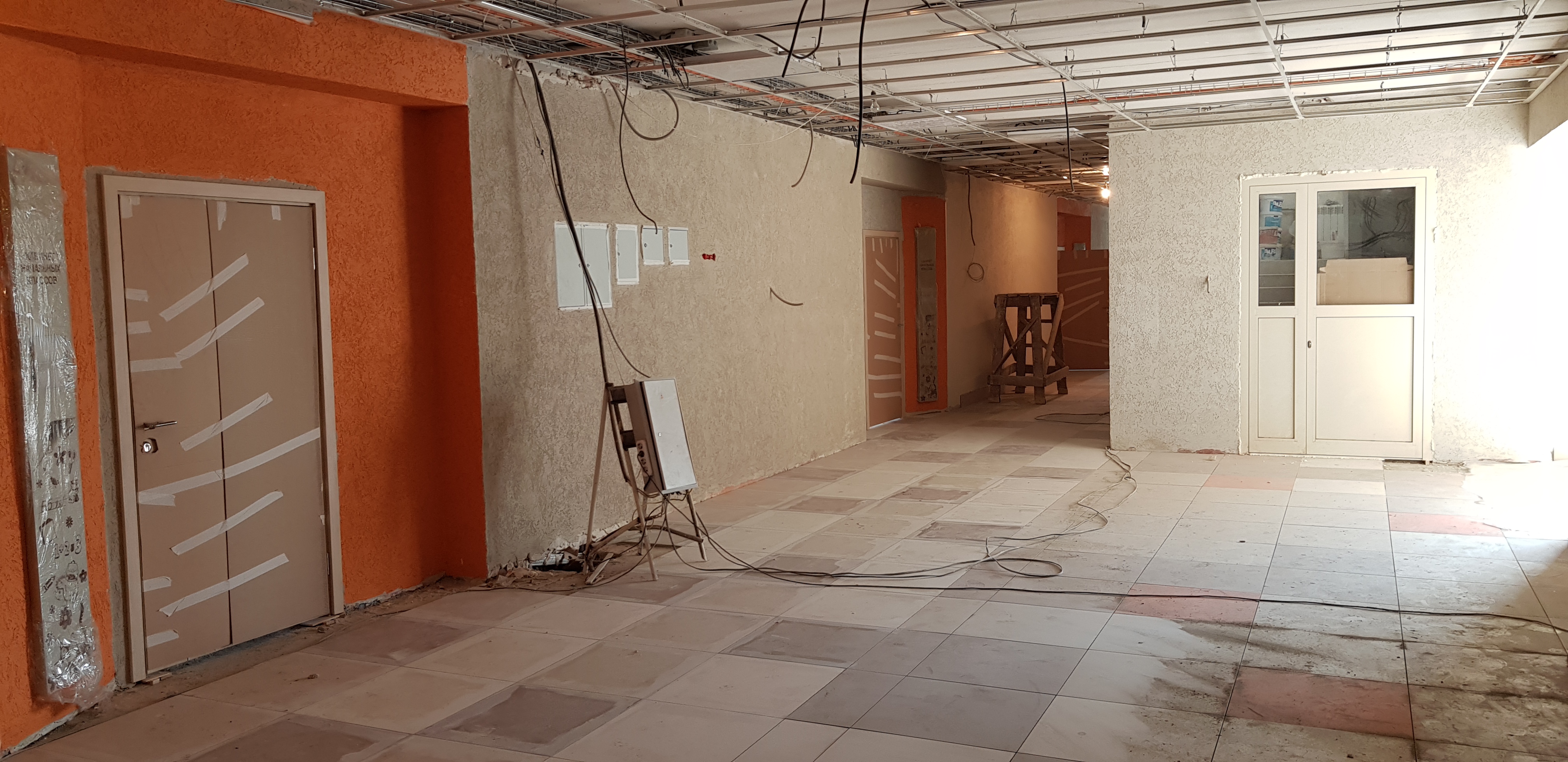 – Детей "переселили" в университет неподалёку, – рассказал один из рабочих. – Они там с сентября не учатся. А внутри капитальный ремонт идёт. Всё переделываем – вентиляции, системы кондиционирования и даже подвал. Внутри, кстати, уже почти всё готово.