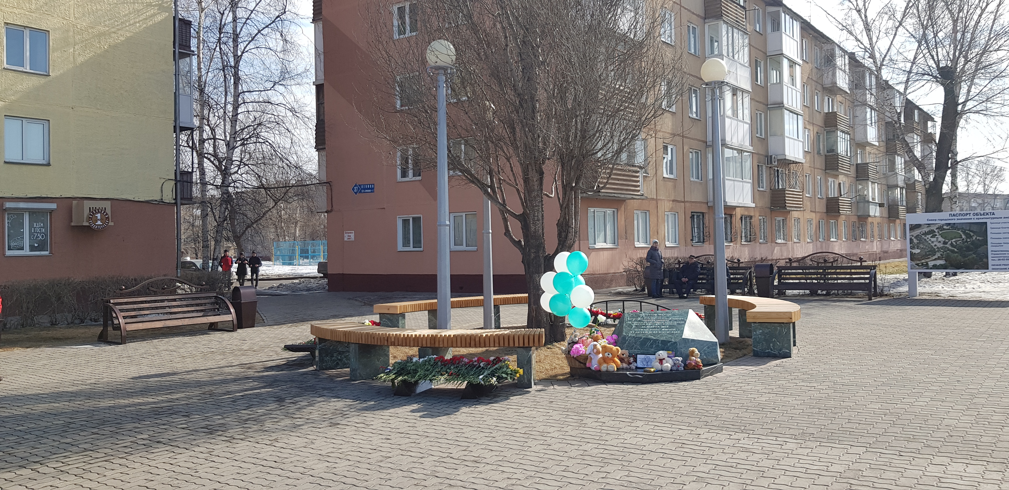 Памятный камень, с десяток игрушек и скромные букеты – всё, что осталось от былого мемориала памяти жертвам пожара в "Зимней вишне". На месте трагедии дежурят волонтеры.