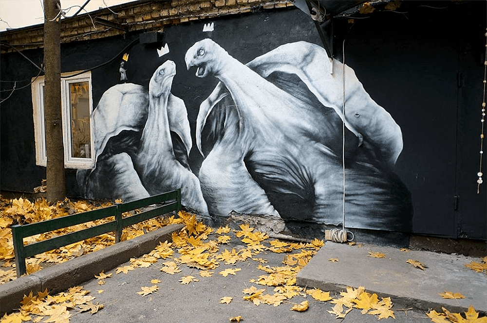 Подобные рассуждения могут быть началом интересной беседы, но уводят нас от самой сути искусства и того, зачем его создают. Для меня как для художника гораздо важнее то, что я делаю, а не ярлык, который на это можно повесить. Нарисовать холст для галереи или мурал на стене — суть одна. Это просто различные подходы в формате высказывания и способе взаимодействия со зрительской аудиторией, каждый из которых интересен по-своему. Поэтому, когда я начинаю работу, я не думаю о том, будет это стрит-арт или живопись, к чему это отнести и как обозначить, — это вопросы второго порядка. Главное — делать искусство.