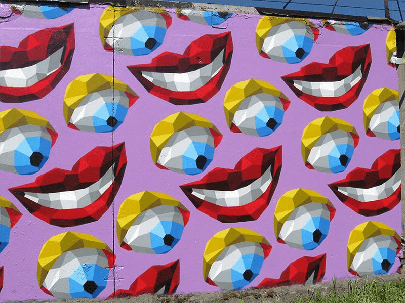 У художника Zmogk в галерее Triumph недавно проходила выставка Flashbacks, где была представлена абстрактная живопись. Это не мешает Zmogk пойти на следующий день на улицу и сделать граффити на городской стене.