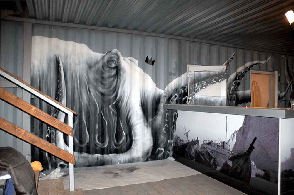 Очень долго рисуя граффити, я понял, что мне недостаточно просто писать своё имя. Сейчас я в меньшей степени занимаюсь граффити и стрит-артом, хотя на первый взгляд может показаться, что это не так. Многие работы, сделанные на стене, используют, по сути, только саму стену и спрей, потому что это очень удобный материал.