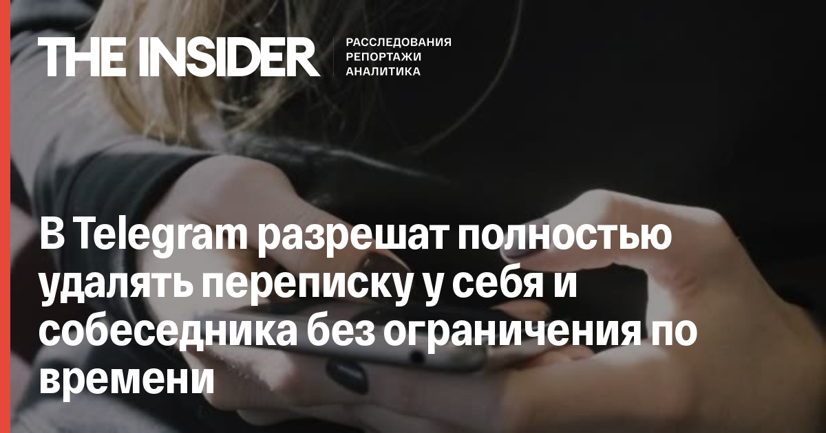 В Telegram появилась возможность полностью удалять личную переписку без ограничений по времени, сообщается в блоге компании.