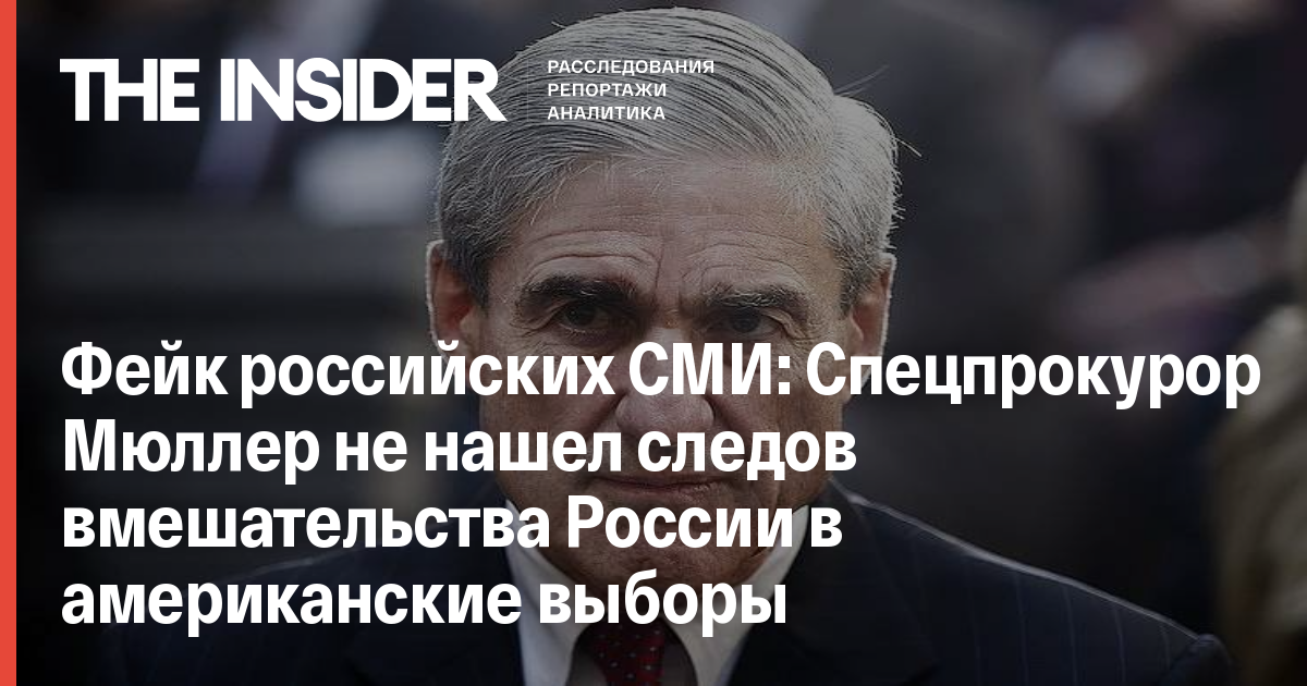 Фейк российских СМИ: Спецпрокурор Мюллер не нашел следов вмешательства России в американские выборы