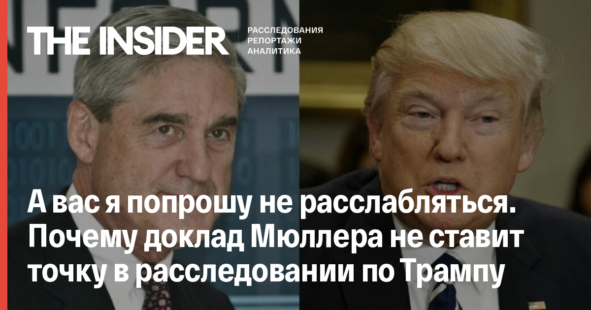 А вас я попрошу не расслабляться. Почему доклад Мюллера не ставит точку в расследовании по Трампу