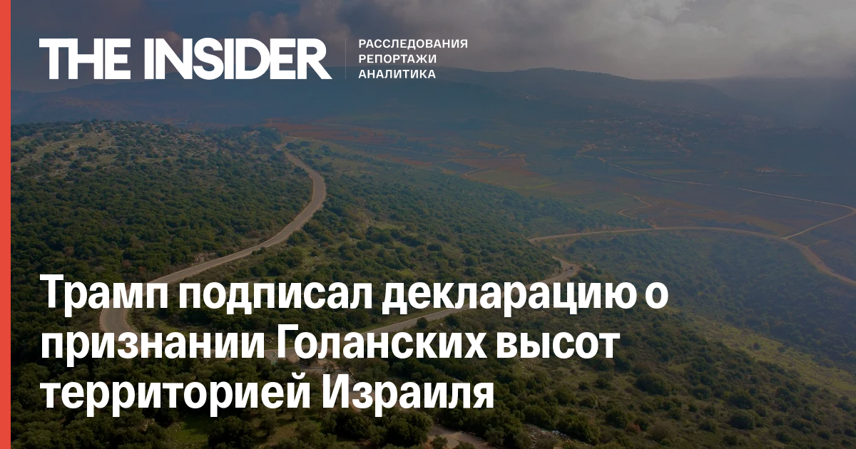 Трамп подписал декларацию о признании суверенитета Израиля над Голанскими высотами, сообщает Reuters.