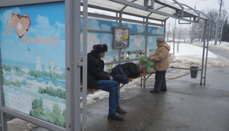 Владимирские алкоголики пьют на остановках и кидаются на автобусы