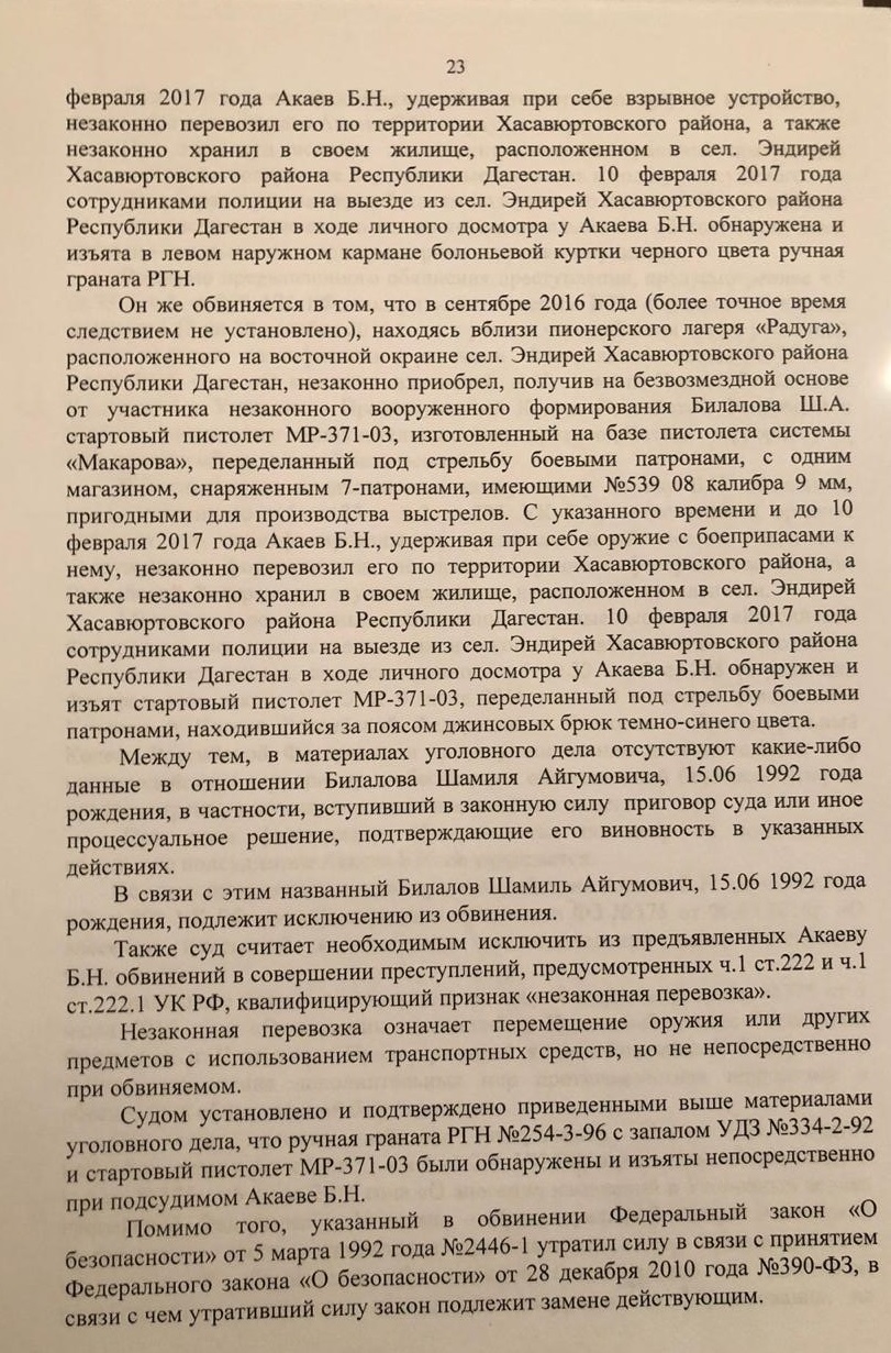 "В итоге признали виновным. Но интересно вот что: его довод о том, что автомобиль был отдан под дулом пистолета, опровергли тем, что Шамиль Билалов не осужден и не привлечен к ответственности за хранение и ношение оружия. Как он может быть членом НВФ, если у него нет оружия?" – недоумевает Магомедова.