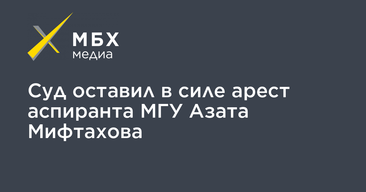 Мосгорсуд отклонил апелляцию защиты на арест аспиранта МГУ Азата Мифтахова, подозреваемого по делу о брошенной дымовой шашке в офис «Единой России», сообщила «МБХ медиа» активистка Елена Горбань.