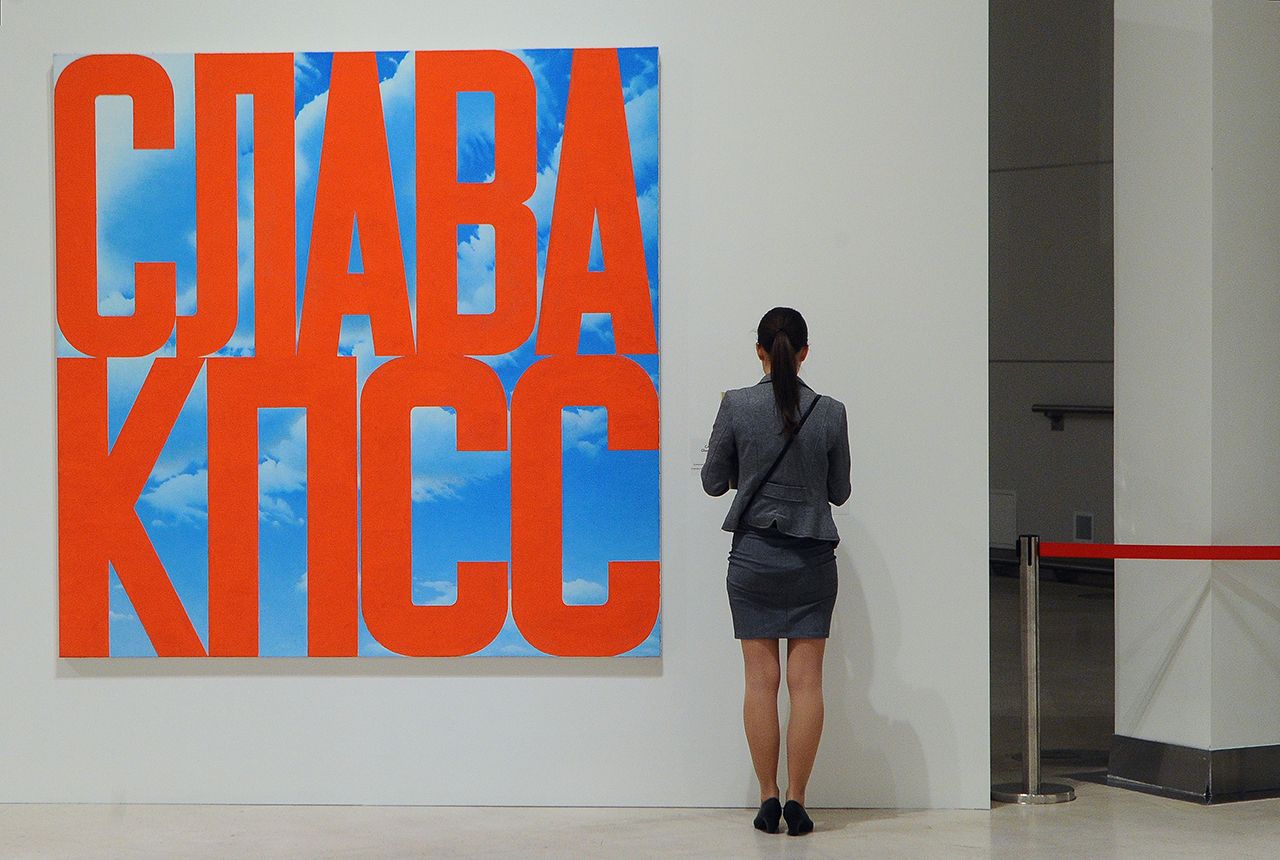 — Вы говорили о картине «Слава КПСС», что все думали, будто это какая-то ирония, а вы рассказывали, что вам важно было, чтобы красные буквы не налезали на облака. Ваши работы — при том, что они порой воспринимались как прямые высказывания — никогда не были прямыми. Верно ли я понимаю, что своими картинами вы хотите сказать больше, чем оно читается буквами и вообще русским языком?