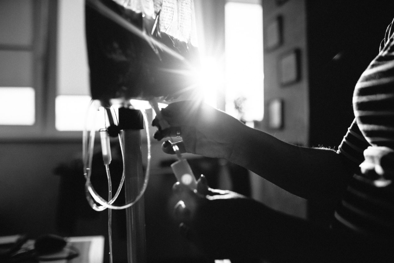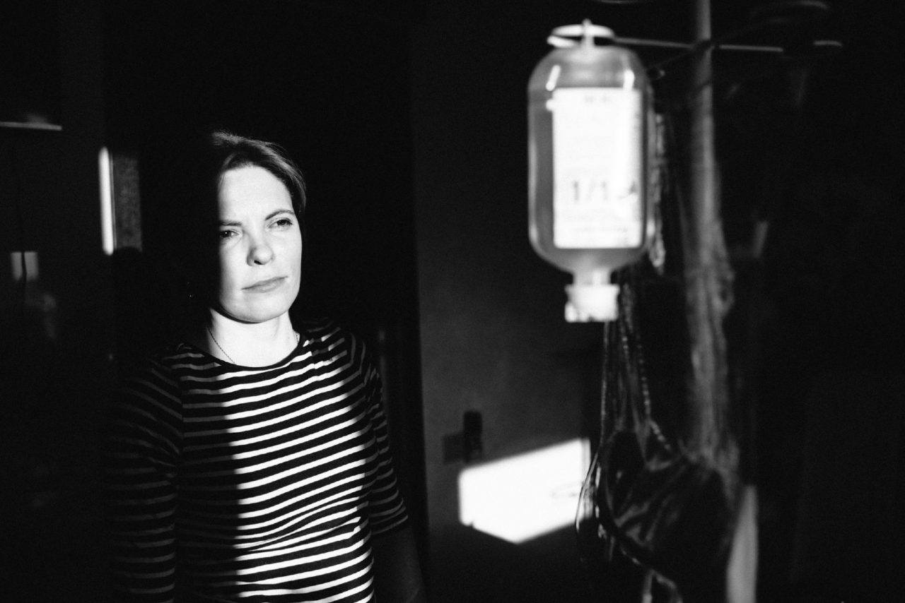 Кате 37 лет, у нее очень тонкие, почти прозрачные руки и уставшие глаза. Когда она наклоняется, видно, что ее грудная клетка иссечена шрамами. Они, как китайские иероглифы, рассказывают о жизни доктора больше, чем она сама. Над сердцем Кати темный бугорок — это вживленный под кожу титановый порт. В него доктор Анисимова вводит иглы — ставит себе капельницы с питательным раствором.
