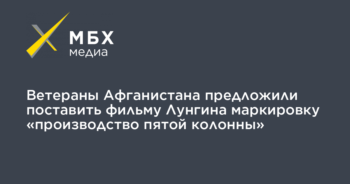 Ветераны войны в Афганистане предложили маркировать новый фильм Павла Лунгина «Братство» значком «производство пятой колонны», об этом «МБХ медиа» рассказал заместитель председателя Центрального правления Российского союза ветеранов Афганистана (РСВА) Владимир Кошелев.